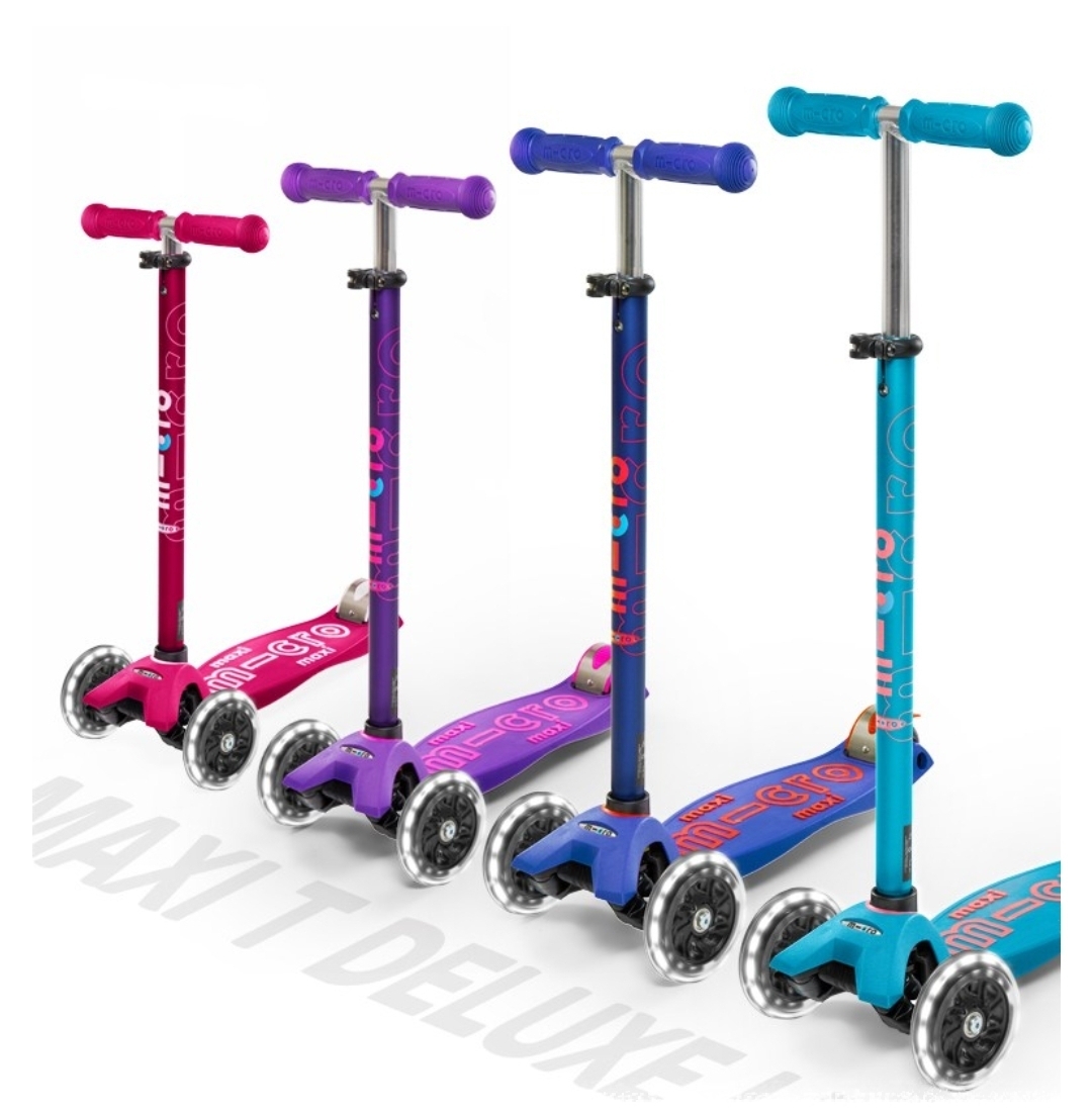 맥시(Maxi) 시리즈: 5세 이상 어린이를 위한 삼륜 킥보드로, 무게 중심이 안정적이며 핸들 높이 조절이 가능합니다.