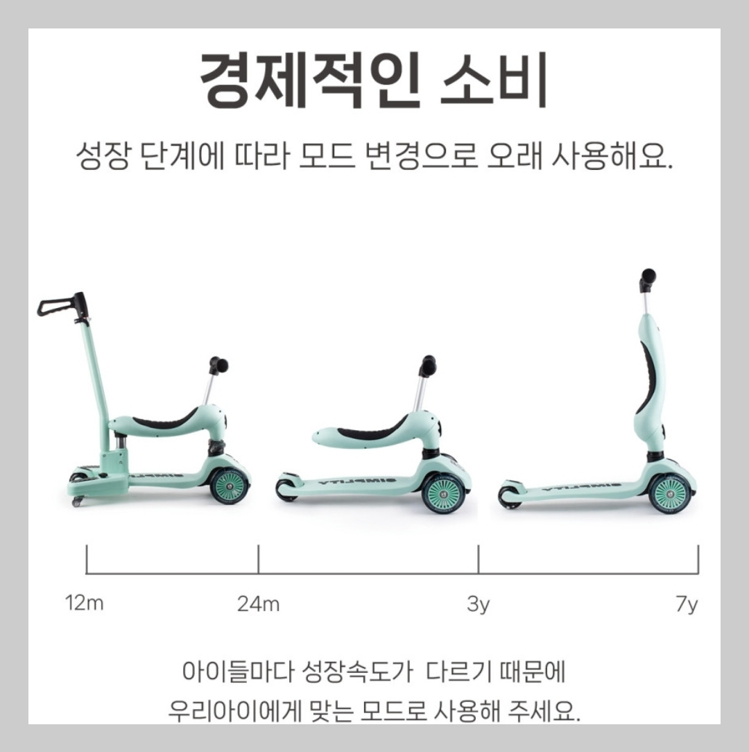 처음에는 라이드온처럼, 나중엔 킥보드처럼 변형하며 오랫동안 사용할 수 있고, 무엇보다 안정성과 디자인이 뛰어납니다.